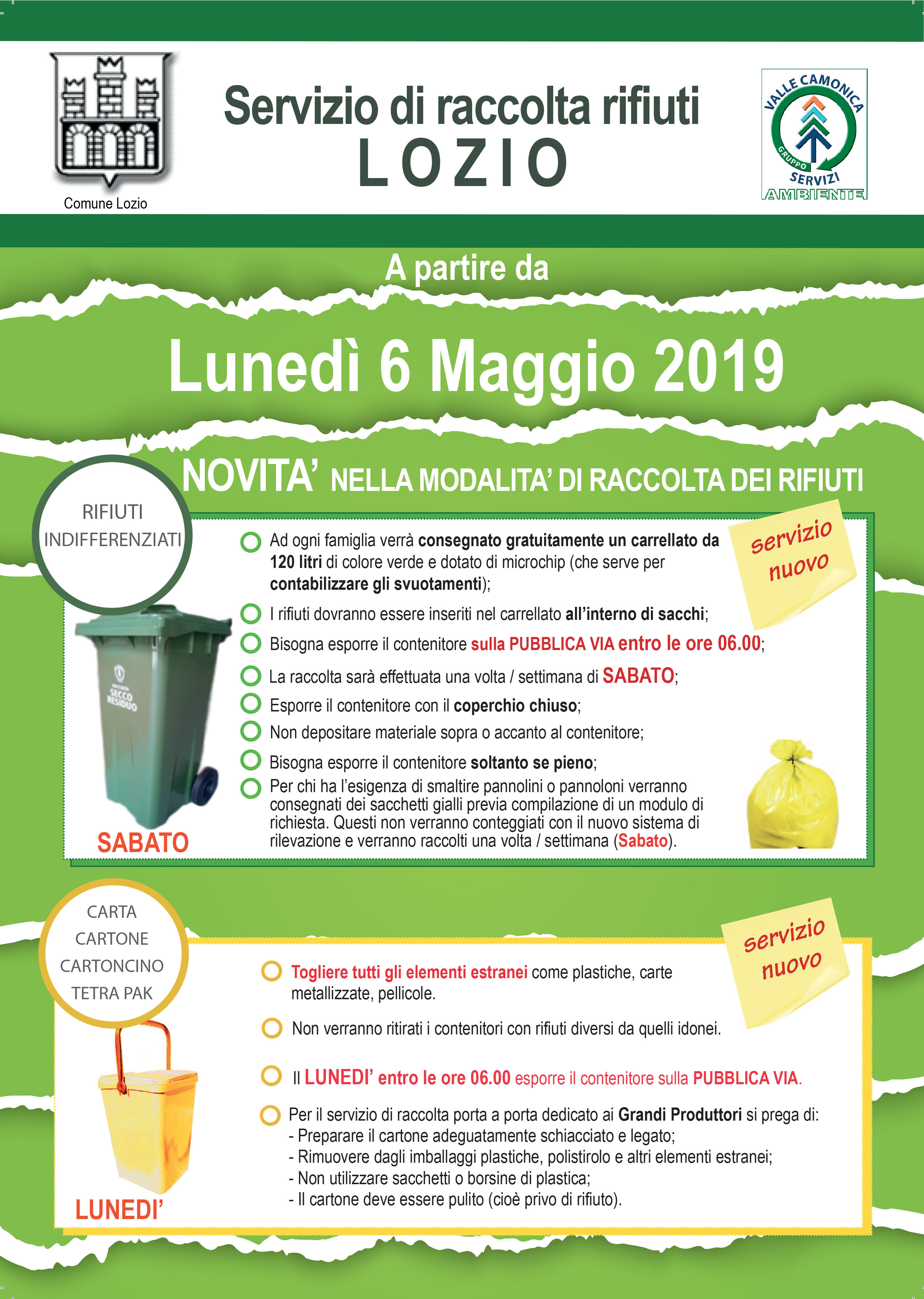 È disponibile il nuovo calendario raccolta rifiuti del Comune di Lozio per il 2026, con alcune importanti novità.