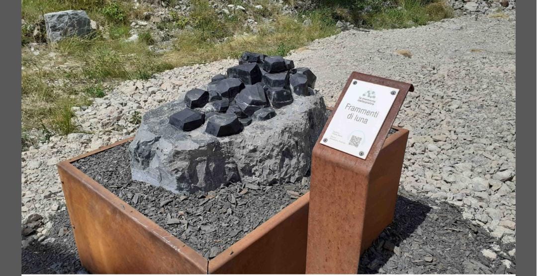 “Frammenti di luna” è parte de La Memoria Delle Pietre, percorso di ricerca e valorizzazione artistica dei siti estrattivi e delle pietre della Valle Camonica, il cui obiettivo è la restituzione al territorio camuno di un patrimonio inestimabile di cultura e lavoro artigianale. Il progetto, triennale, artistico e di ricerca, promosso dal Distretto Culturale della Comunità Montana di Valle Camonica e da una decina di Comuni della valle, è sostenuto da Regione Lombardia. “In tempi remoti, lassù nell’universo, hanno sgretolato la luna. Dalla sua polvere adagiata sulla terra hanno preso forma le montagne ed è nata così la Concarena. Passano gli anni e l’uomo inizia ad estrarre la pietra e con sé, inconsciamente, si prende anche i frammenti di luna. Com’essi siano sopravvissuti così brillanti rimane un mistero.”