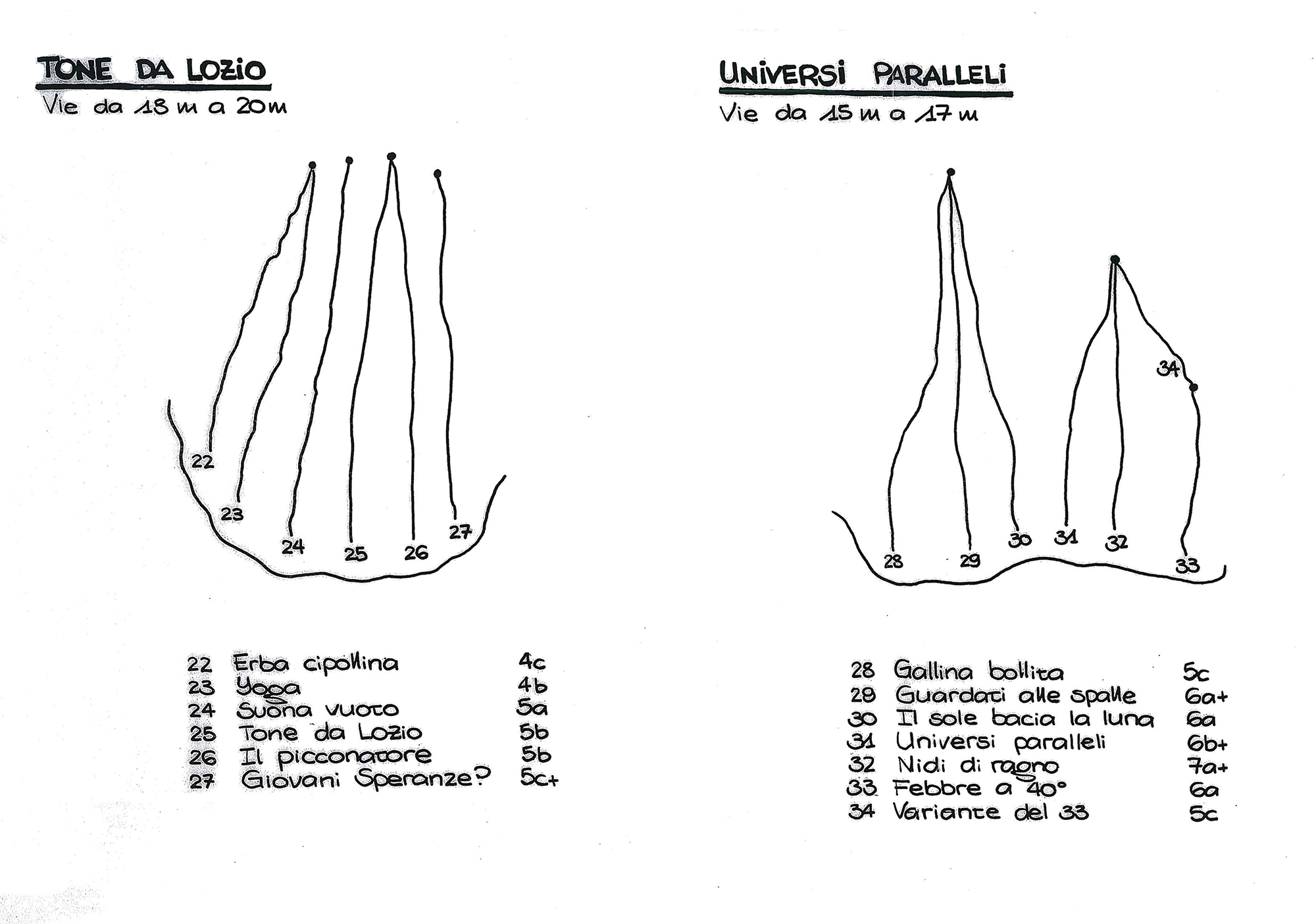 - È composta da ben 34 vie monotiro, con diversi gradi di difficoltà - da 4A fino a 8A - divise in tre settori con belle linee su pareti leggermente a strapiombo.